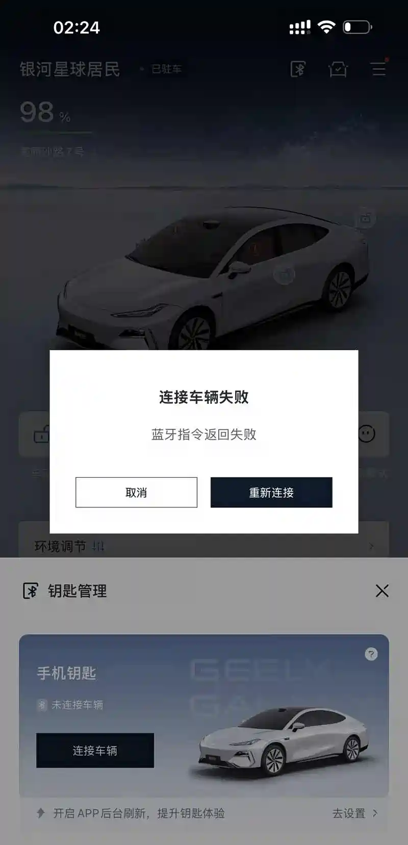 周五换完密封圈之后,周六本来想用车,因为之前都是用数字蓝牙钥匙,所以就没带钥匙,没想到下去之后用App一直连接不上蓝牙数字钥匙。
