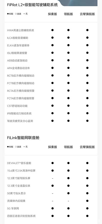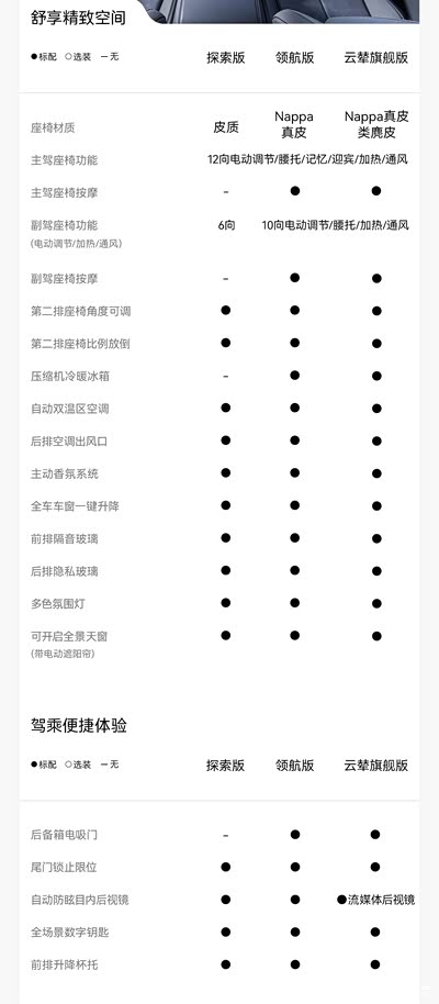 配置方面,新车全系标配15.6英寸中控屏、12.3英寸全液晶仪表、5G车联网、四音区语音识别控制、第二排座椅角度可调、第二排座椅比例放倒、自动双温区空调、后排空调出风口、主动香氛系统、多色氛围灯、可开启全景天窗(带电动遮阳帘)等。在内饰颜色方面,官方推出了日蚀蓝、浅滩绿、风暴米3款内饰配色。