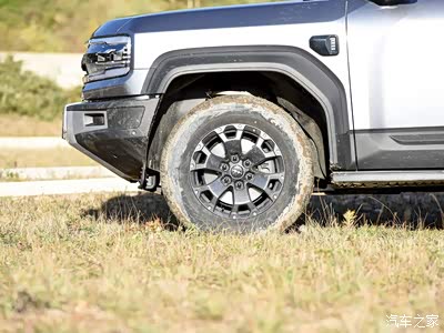 豹5配备两种轮胎规格,低配车型装备尺寸为265/65 R18的佳通轮胎、还有半包备胎罩和防刮蹭轮眉,高配车型轮胎尺寸为275/55R20、另外还会配备全包备胎罩、喷漆轮眉、前打孔通风刹车盘和6活塞刹车卡钳。