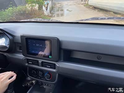 实拍的低配车型在中间配备了收音机及储物格,而在高配车型上取而代之的则是8英寸多媒体大屏,多媒体/音乐等功能一应俱全,增添驾驶途中的愉悦感;并具备倒车影像功能,增加了城市中行车的安全系数。
