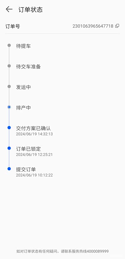 昨天说好的“明天就让运气决定,基于情怀,将优先询购问界M9”。昨天的明天就是今天,不能跟自己爽约,一早就联系问界广州中心询购事宜,并明确提出了前提条件是两月内提车,心里一直嘀咕着拒绝吧拒绝吧拒绝吧,以便心安理得转头买那GLE。一位可能是问界区域中心主管的人士告知说问界生产能力在不断扩大,如果标配+全款,省却信贷审核流程,及时下定锁单,7周内也能交付。一时无话可说不知不觉就顺滑地在华为商城下定并锁单了,很快又顺滑地加入了华为客服+问界4s店+问界工厂的专属服务微群,很快订单也顺滑地进入了排产状态。