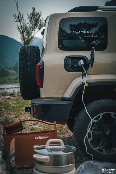 不说了,把后备箱的装备先拿出来,然后打开坦克300Hi4-T我最中意的功能: 外放电!展开桌子,打开椅子,插上放电枪,取出电锅,就算是准备完毕了。孩子和狗哥在一旁玩得好不惬意。营地老板在一旁:“你这个可方便啊,带电的都能用呗就是?”“目前标配的是6kW功率,反正基本能想到的都能用了,您看我那个包里还有个电水壶呢,哈哈哈。”我一边收拾一边回答。