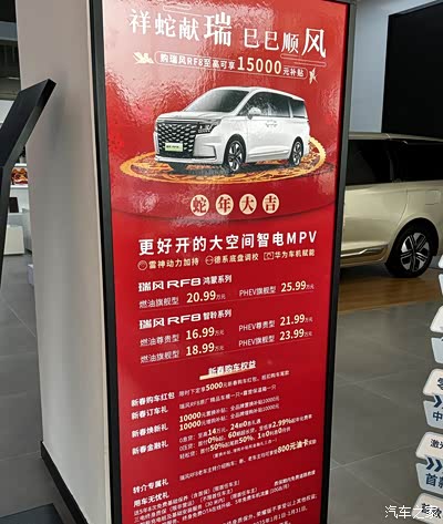 店里摆了.瑞风RF8的各种版本,c位的就是插混的,右边第一是油车第二是纯电版本。