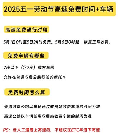五一假期7座及以下客车免高速费,堵车是一定会堵的,但咱们可以错峰出行尽量避免,比如30号晚上或者1号早上早一点上高速,实时用导航查看拥堵路段,能绕行就绕行。