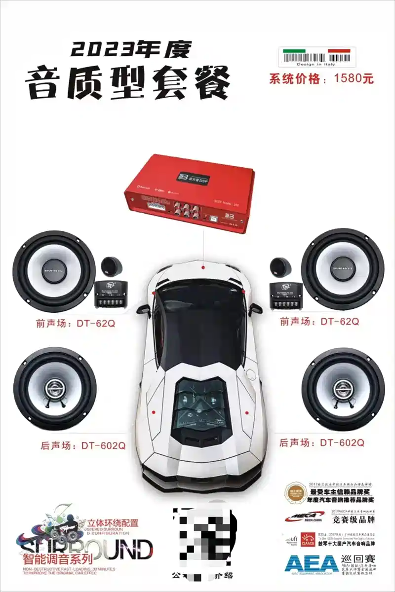 改装找的是朋友的店,还是比较信得过的,给我推荐了两个套装,都是DSP+4中低+2高,送低音炮。入门的1580元,中等的2880元。