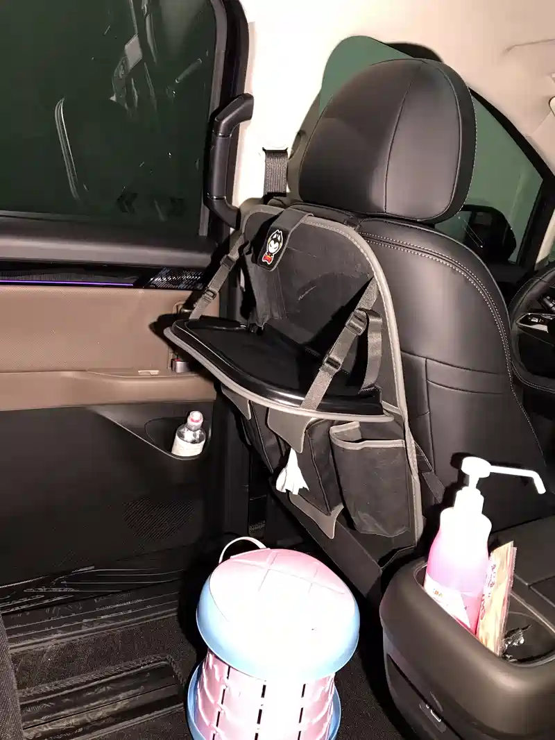 有了车后想要加的配置越来越多,想要吸顶电视,想要小桌板,想要车载垃圾桶,想要纸巾挂架,结果一搜配套的吸顶电视要四千,小桌板要一千多,还不是无损加装的,果断放弃。无意间发现这个只要挂在座椅后边的多功能置物架,解决了一切烦恼,外出再带个ipad,连上车机的wifi,完美!!!还有好多款可以选,选了个最新款功能最实用的,换了其他车子也能用