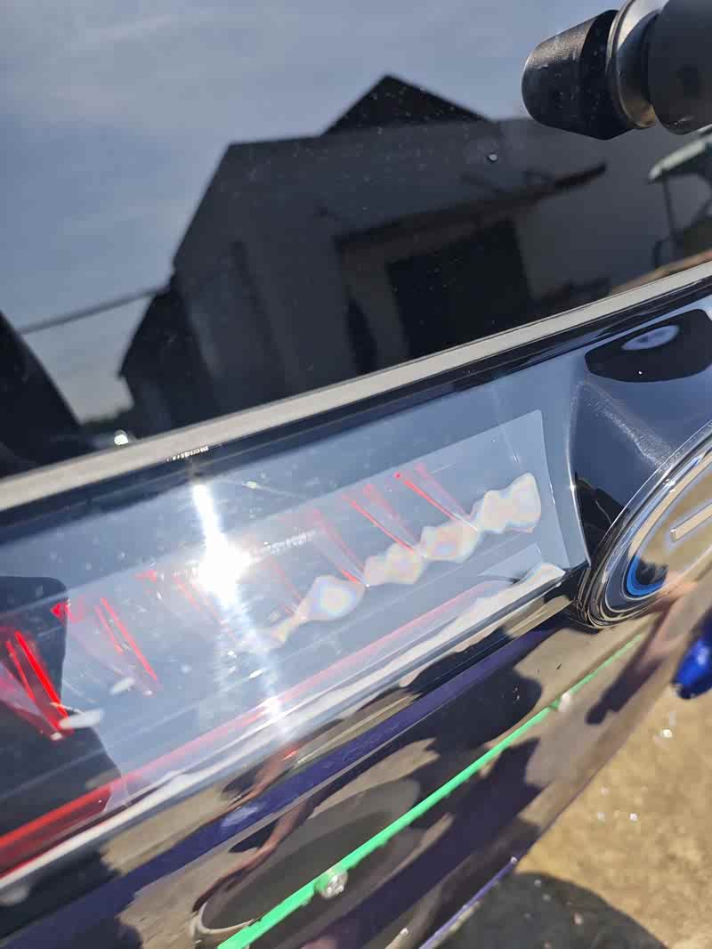 今天家里人帮忙手洗擦车,因为后面被太阳晒的超级烫,直接用水去擦这个车,然后神奇的出现了因为这个灯上有水滴没擦干净,然后用干抹布擦水擦干后发现有水滴的地方里面就有雾气了,旁边好多有水滴的地方里面都是一个一个小点的雾气如图,没有水滴的地方里面是没有雾气的,然后把外面擦干没多久里面的雾气也就暴晒5分钟左右就消失了了!(本人分析灯被晒了很烫。。。水滴的地方被太阳晒后有温差里面就形成了雾气就是不知道是不是灯的密封出现问题找到问题才是关键)今后看里面真进水了反而可以保修了。。。。这种情况真心的很尴尬!!!!