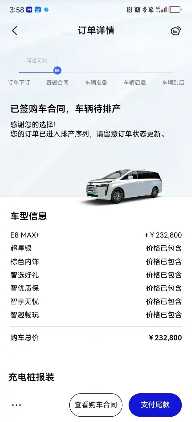 删除 推荐精华 置顶 取消置顶 关闭回复 打开回复 推荐编辑 楼主禁言 移动帖子 重置头像 操作记录 BoBo2303 0浏览 · 2024-11-26 17:39· 发布于广东 大冤种在此。11月25下定。无置换无报废E8MAX+版本228000落地全包,贷款10万,补贴两年一万利息。两年后可提前还款。下定全靠冲动。 举报 打开汽车之家 阅读体验更好 全部回复 只看楼主 只买国产车1st 关禁闭 已屏蔽 0 为啥不在4s买啊,有现金优惠 2024-11-26 19:11 来自江苏 回复 沙发 屏蔽此人 举报 删除 取消删除 禁言 重置头像 爱你无期限 关禁闭 已屏蔽 传祺E8新能源 0 知足吧,至少给你优惠一万,我们去年买的E8一分也没有享受到优惠 2024-11-26 19:54 来自四川 回复 板凳 屏蔽此人 举报 删除 取消删除 禁言 重置头像 盲侠骑劫隐形战机96 关禁闭 已屏蔽 0 怎么那么贵,我龙腾+,216500落地的 2024-11-27 09:02 来自广东 回复 地板 屏蔽此人 举报 删除 取消删除 禁言 重置头像 我是李大青 关禁闭 已屏蔽 0 那最少还有厂补1w呀 2024-11-27 15:15 来自广东 回复 屏蔽此人 举报 删除 取消删除 禁言 重置头像 潍坊车友2457290 关禁闭 已屏蔽 0 23.88龙腾,车价优惠4000,贷款补贴15000,置换10000,省补15000。 2024-11-27 19:37 来自山东 回复 屏蔽此人 举报 删除 取消删除 禁言 重置头像 丶1360 关禁闭 已屏蔽 传祺E8新能源 0 我们去年的买的说多了都是泪 2024-11-28 08:06 来自江苏 回复 屏蔽此人 举报 删除 取消删除 禁言 重置头像 anf59w 关禁闭 已屏蔽 0 提升生活品质吧相当于。买喜欢的东西,算不上怨种 2024-11-28 09:19 来自天津 回复 屏蔽此人 举报 删除 取消删除 禁言 重置头像 orlj 关禁闭 已屏蔽 0 怨种有福气 2024-11-29 10:16 来自湖北 回复 屏蔽此人 举报 删除 取消删除 禁言 重置头像 老菜一碟 关禁闭 已屏蔽 0 哎呀,吃不完的亏,明年估计更便宜 2024-11-30 11:14 来自江西 回复 屏蔽此人 举报 删除 取消删除 禁言 重置头像 au8op5mydcp 关禁闭 已屏蔽 传祺M8 0 你有老子冤全款25买了一部m8大师至尊版我感觉我冤到极致了 2024-12-01 06:47 来自福建 回复 屏蔽此人 举报 删除 取消删除 禁言 重置头像 还想在主楼增加内容?点击续写主楼内容 登录 参与更多互动 发表回复 打开App,查看更多评论 首 页 上一页 下一页 末 页 跳 转 取 消 还想在主楼增加内容?点击续写主楼内容 登录 参与更多互动 系统故障 发表回复 图片最多上传9张 微信好友 微信朋友圈 新浪微博 QQ好友 QQ空间 取消 相关推荐 加载中
