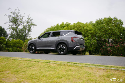 用心欣赏就会发现,起亚EV5有着极其精细化的设计,侧裙的撞色及立体化处理,使得侧边看上去很有层次感。