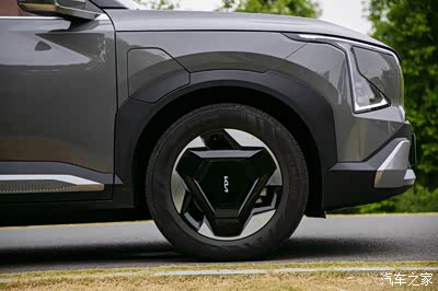 起亚EV5不管是哪个角度,都能够给人带来很强的视觉冲击力,几何锋刃低风阻轮毂设计,动感、优雅。因为高度达到了1715mm,远看也是很有气场。