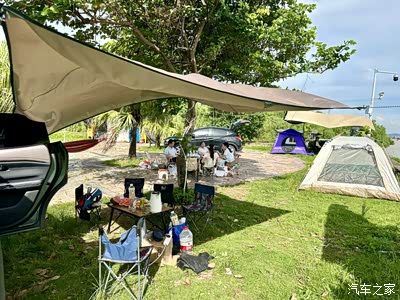 选好地方,把车停好,拉好天幕,再摆上桌椅,然后插上放电枪,引出电源烧水煮茶,再甩根鱼竿出去等鱼儿上钩,不亦快哉!