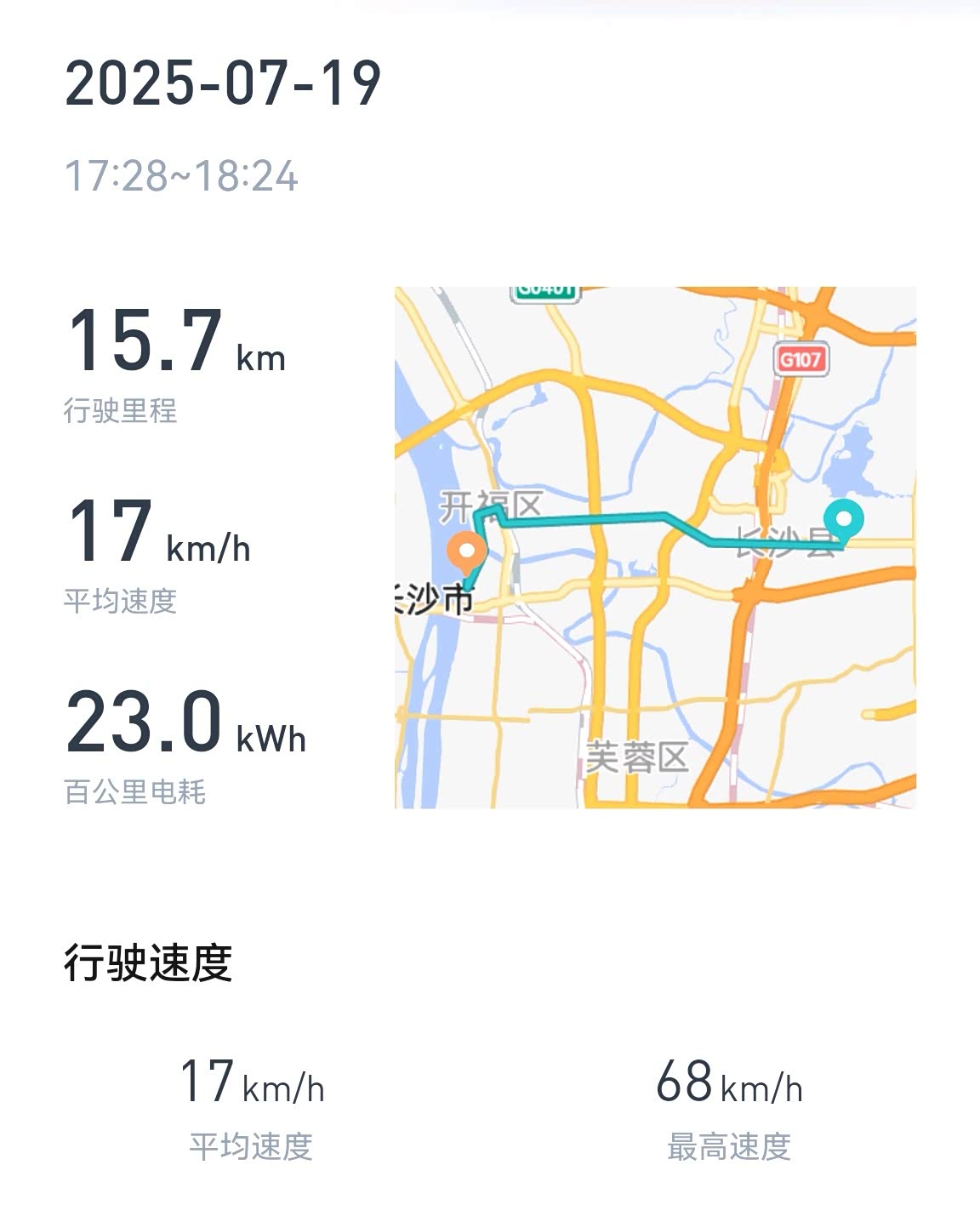 今天瞅一眼日期,7月20号了,离上次给我的昊铂HT(670版)充电都过去整整16天了!那会儿电量还剩23%开始充,结果提前下班没充满,停在了98%。到今天车里居然还有20%的电!这期间我可是天天开着它上下班,虽然来回就5公里不到,但架不住我闲不住啊!周末就爱开着车到处溜达,从星沙跑到河西,又从河西逛哟到洋湖,总之家里是待不住的。