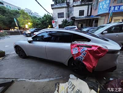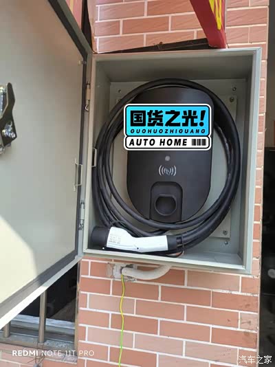 因为暂时在小区地库还找不到车位承租,只好在父亲店铺门前进行补能