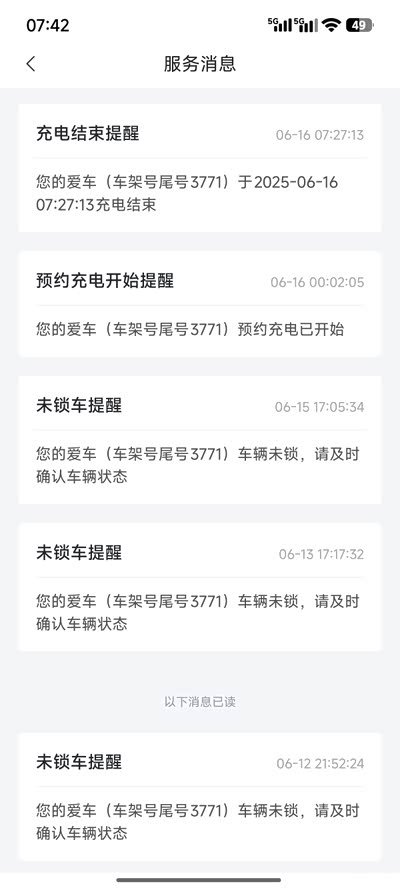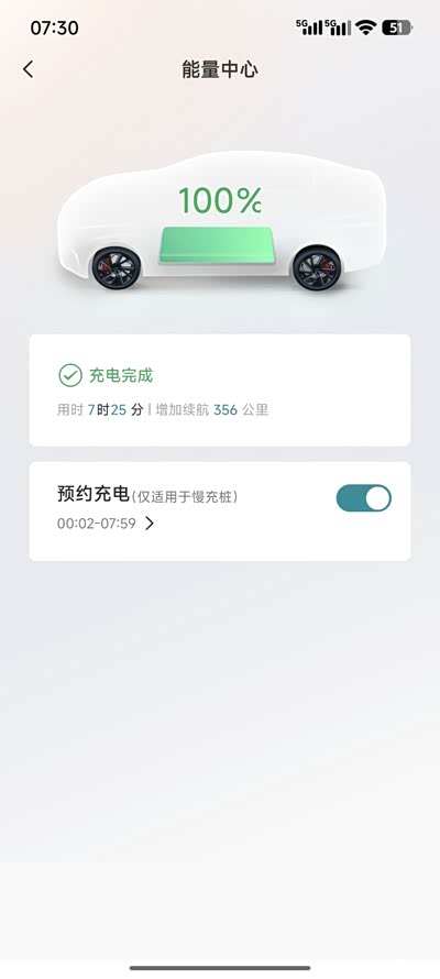 app提示7点25分已充至100%,结束。