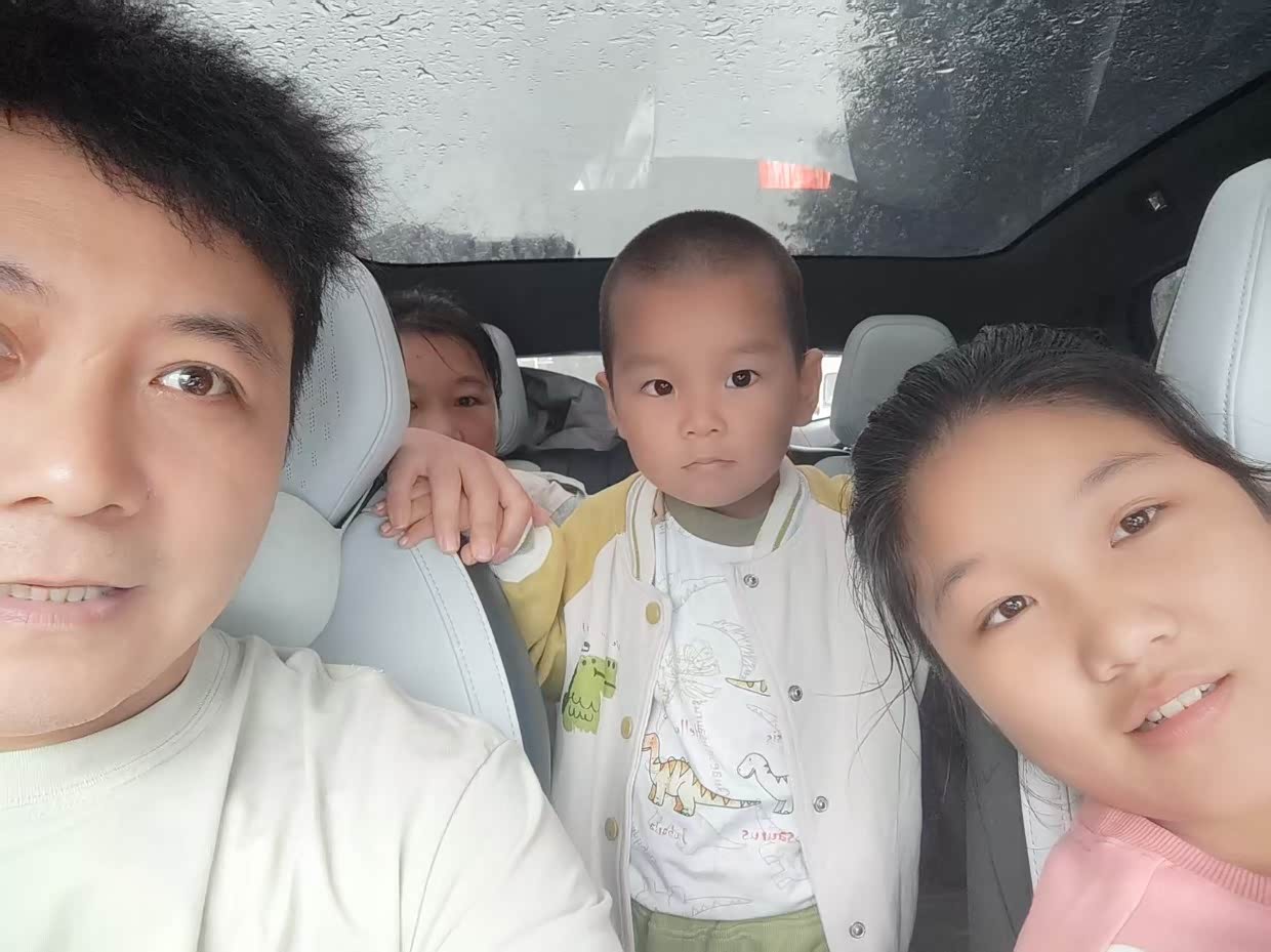一家四口,准备出发,让我们一起happy happy哈。快乐的小家伙!