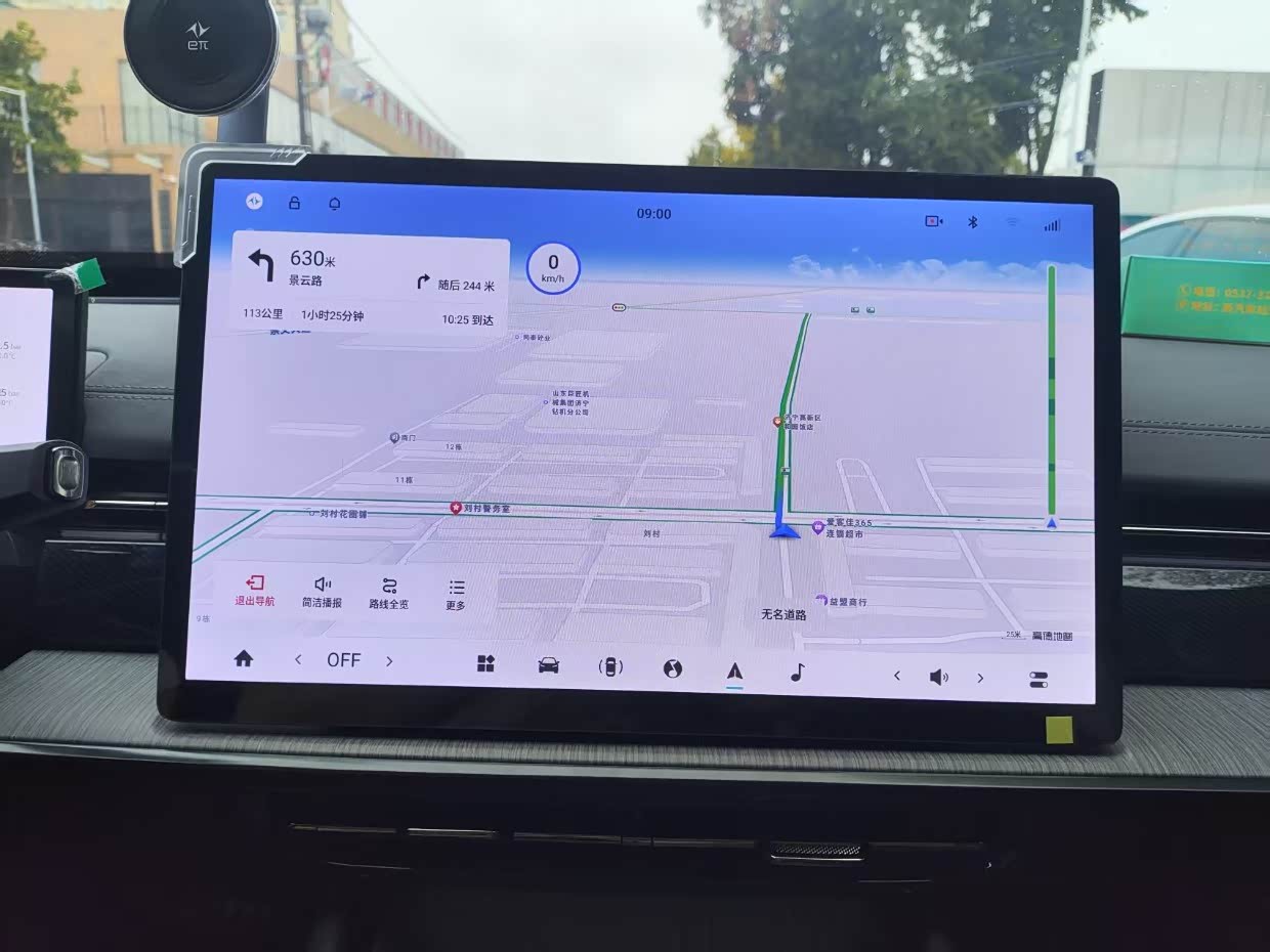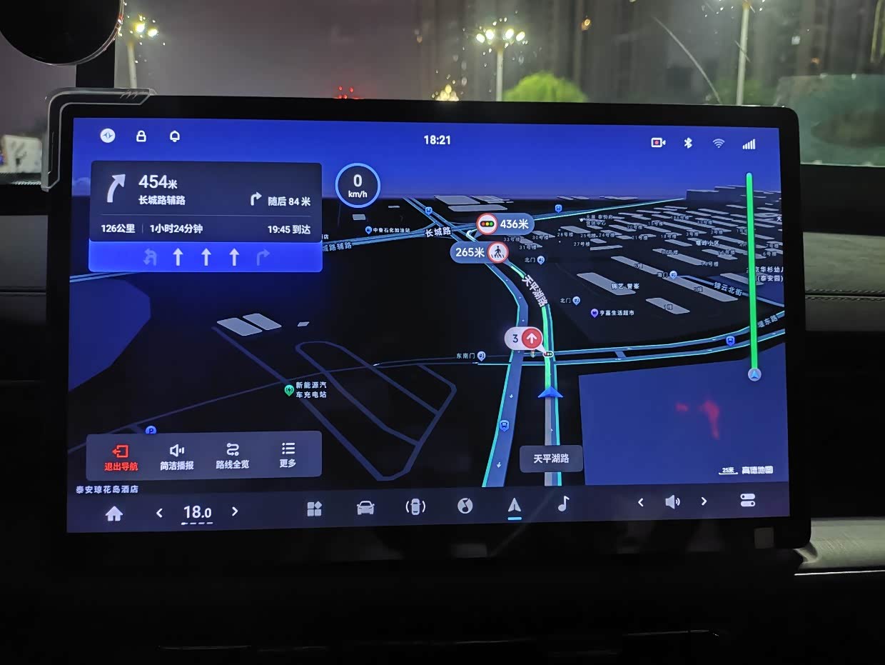 因为昨天晚上有雨,我也没有给车子充电,毕竟现在还可以跑个295公里左右,到泰安是绰绰有余,中途也可以稍微再补充点电哈。开始导航了,显示距离目的地大概130公里,用时大概1个半小时哦。