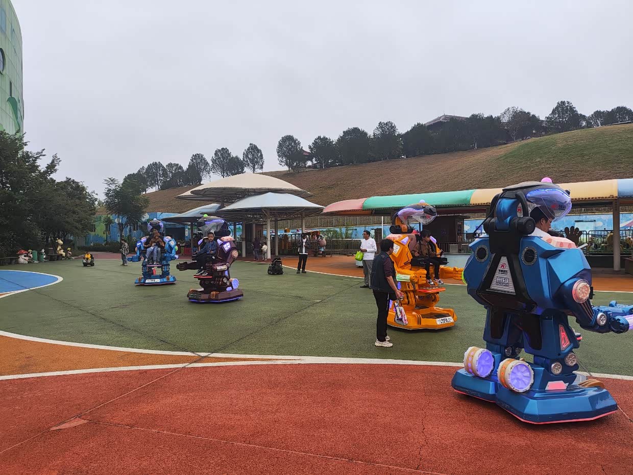 室外主要是有个遥控机器人,孩子可以坐里面操控机器人