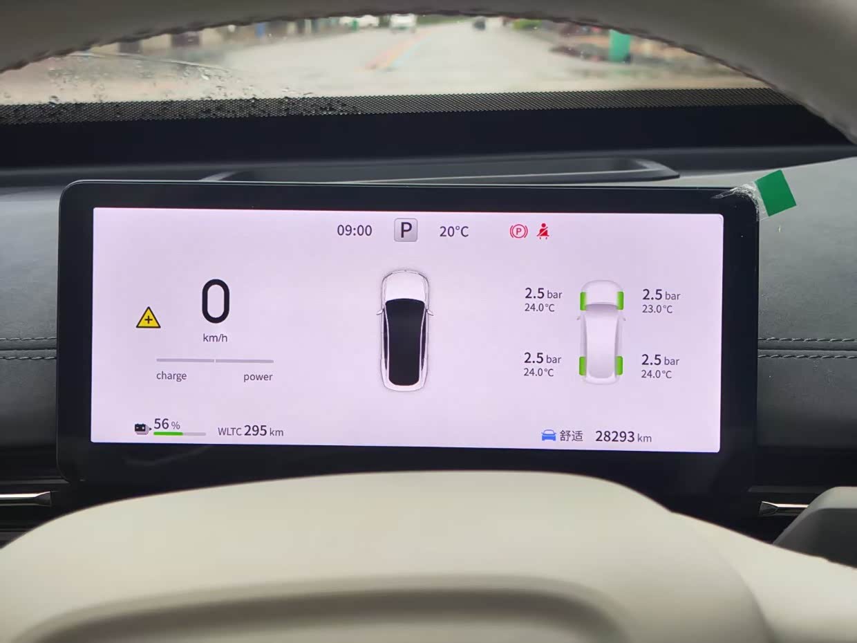电量剩余56%,续航295,不过路面湿滑,耗电量增大,估计也就是跑个200多。