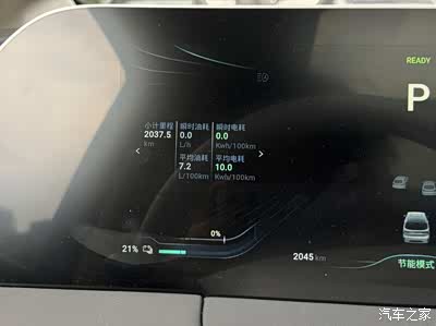现在平均电耗百公里10度,油耗7.2L,有点偏高,继续努力!