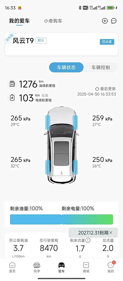 我的风云T9是2024款120KM舒适七座版,颜色墨岩灰,购于2024年11月底,目前行驶里程9000公里,主要用于城市通勤和周末城市周边露营自驾。