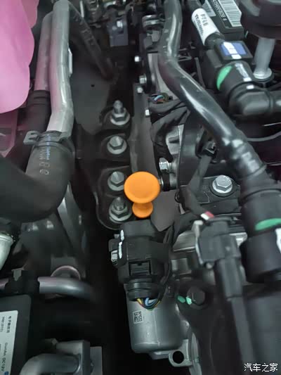 那个小小的橙色的是机油标尺把手,用力抽出就能查看机油状态;