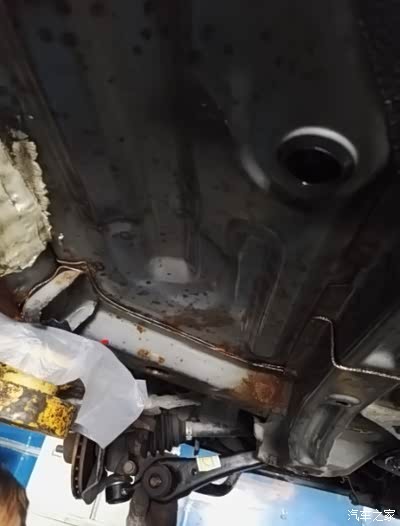左前边底梁下边也是发现锈蚀严重,钣金胶伺候