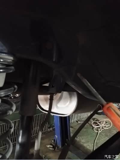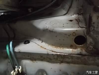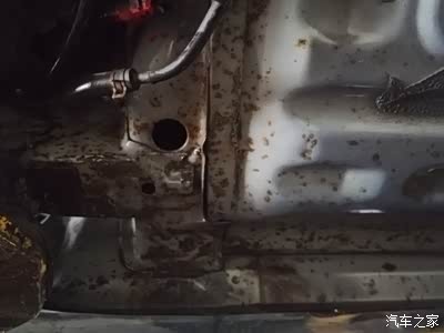 就是这个地方让我对底盘防锈引起重视的,最开始也是大片的锈蚀,已经有些翘皮,开始也是自己手欠,钣金的兄弟说把表面的绣清理一下就可以涂了,我自己非得拿起子撬掉了再涂,没咋使劲把起子捣进去了,被一顿数落,而且原来修过这个车的同事也说,这个车一旦绣穿了根本没有办法补,只有越绣越大,最后就废了,根本没法焊,越焊绣的越快,所以想了想,为了能放心的再玩几年,自己动手,喷底盘装甲