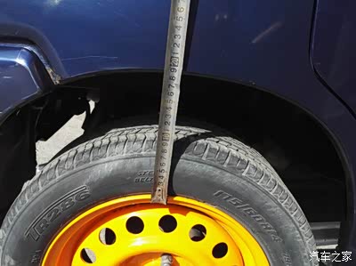 换了桑塔纳的14寸铁圈之后ET值有所变化,前轮稍微有点蹭挡泥板,倒无所谓,但是后轮就麻烦了,蹭轮眉,单人单车60KM/H遇到路面稍大的起伏就能听到轮胎蹭轮眉的声音,坐4个人就完蛋了,时速不能过40KM/H,稍大点点的坑都蹭,光蹭其实也还好,关键是车壳子就这结实啊,割轮胎.......