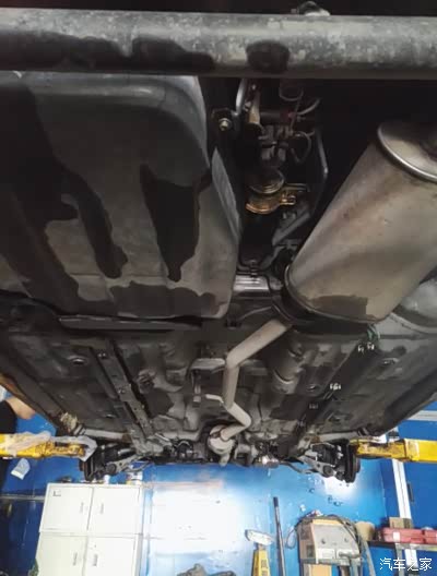 上次调整梁头上大梁校正仪的时候就发现两个前轮后侧有锈蚀的现象,自己手欠,非要除锈再打胶,结果给捅了个洞,老老实实的打了钣金胶,但是底盘底下各处已经有锈点了,钣金的大哥说这个车铁皮薄,一旦出问题没法补,趁着没锈那么厉害保护一下,这次就顺便把底盘装甲买回来,上架子一起搞定