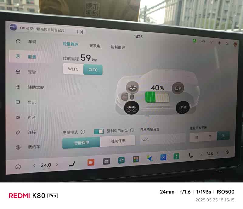 我开车的行驶模式一直用的是经济模式,这次是智能保电。(智能保电会在纯电模式状态下电量掉到15%时,强制发动机介入启动混动模式)