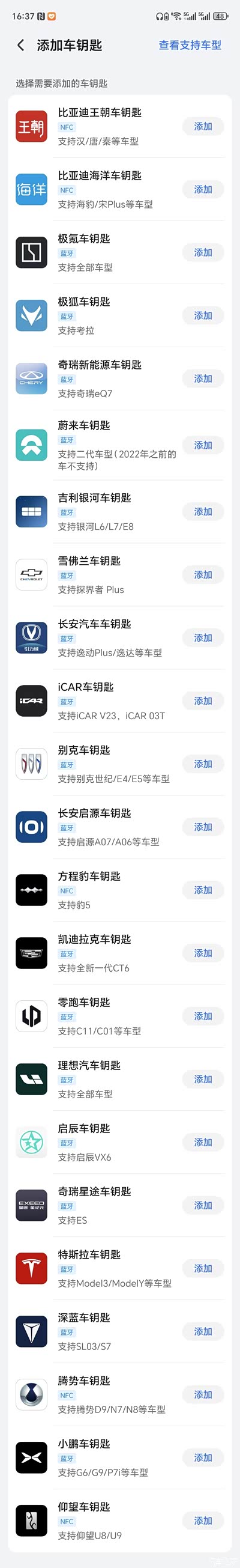 2.数字钥匙支持手机机型有限,安卓系很多都不支持;