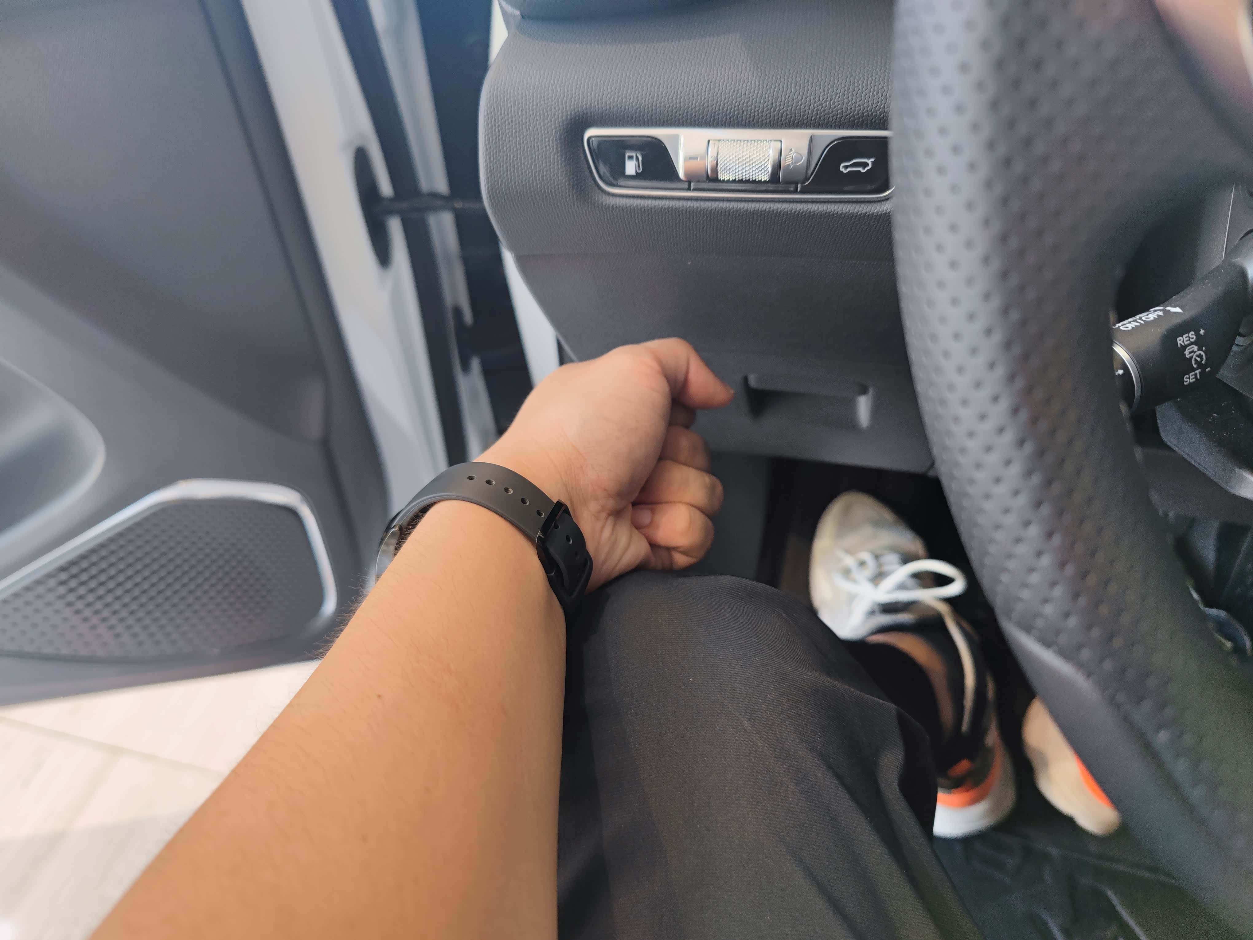 接下来看空间表现,先说明我1.82米的身高坐到驾驶位很舒服,头部不太压抑,大约有一拳多的空间量,视野很开阔,腿部两侧的支撑也比较舒服,不会卡腿。