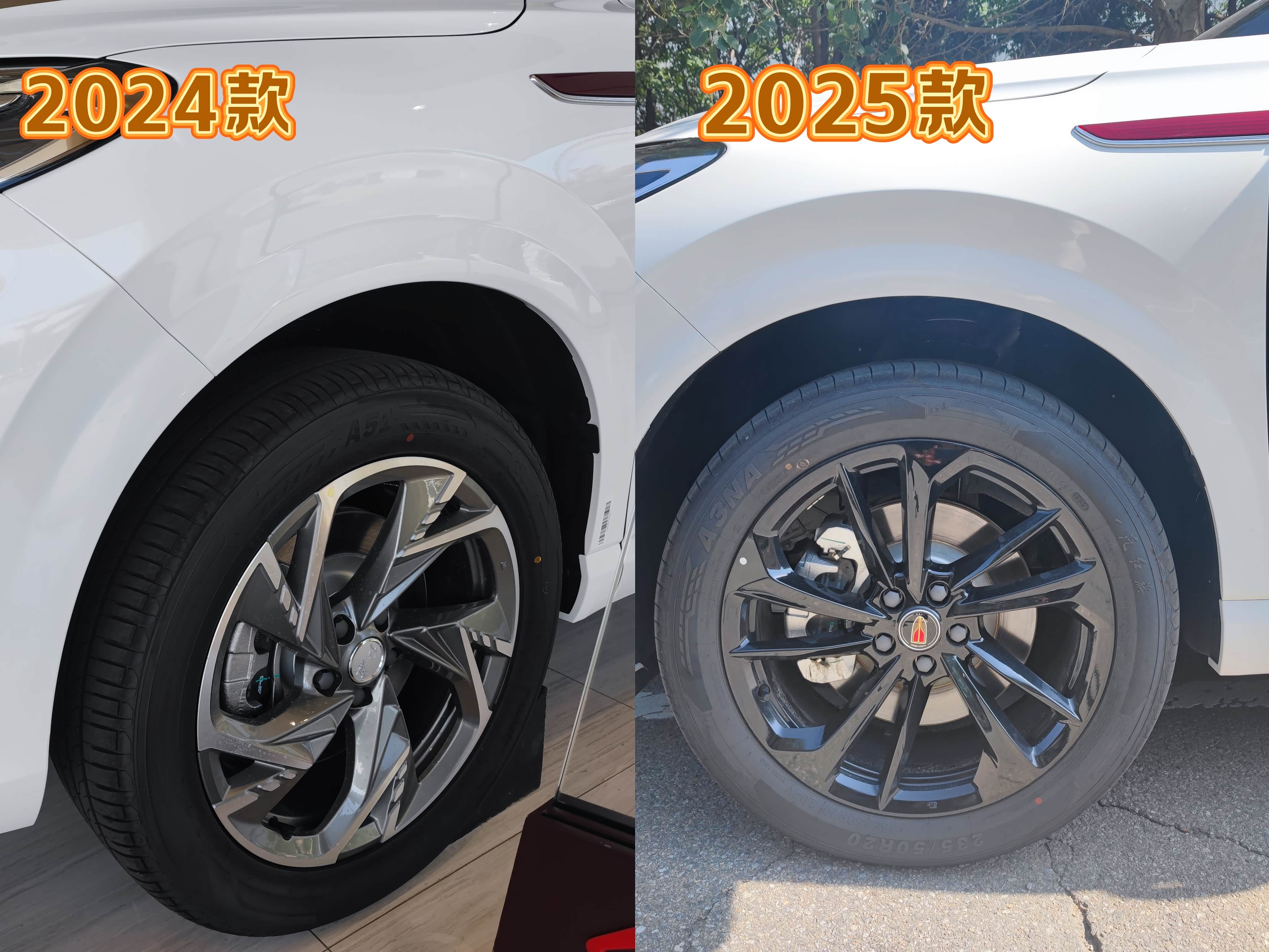 如果说24款和25款对比来看的话,25款换装了全新样式的熏黑轮毂,而且尺寸从19英寸升级到20英寸,235/50 R20的轮胎,一是增加了抓地力,二是视觉效果上也显得更显庄重、大气了。除此之外,两款没有太大的差别!