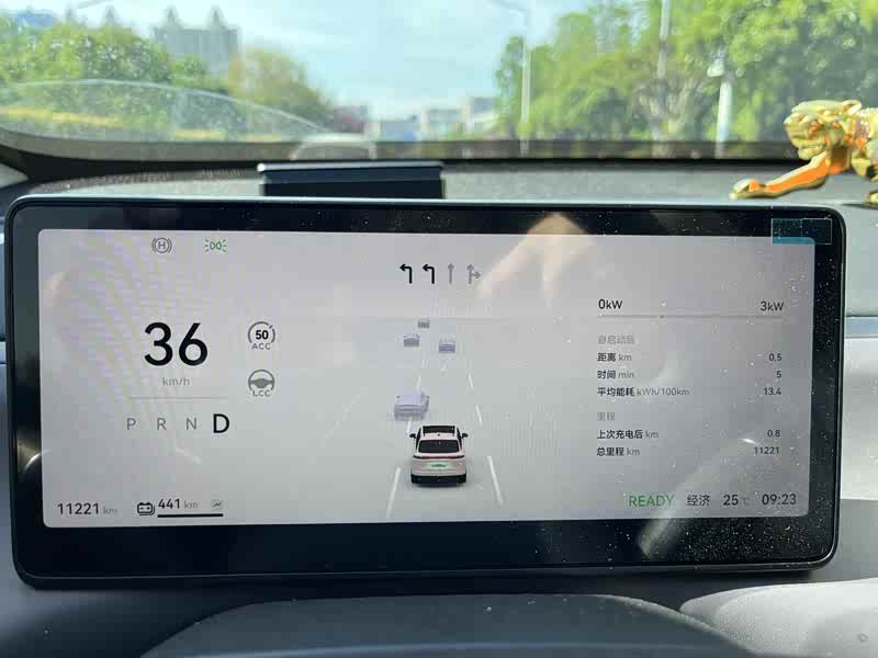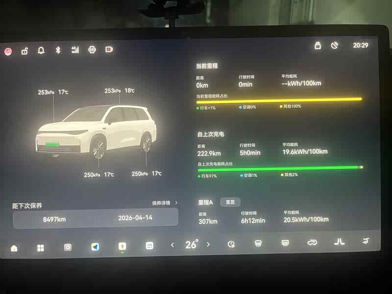 第一段行程出发时续航 441-84 公里到第一个服务区余 284 里程,441-284=157 跑了 108 公里。补能到满动态续航表显 392,跑了余下的行程 300-84=216 公里,到目的地剩 117 里程,216 公里用了 392-117=275,续航达成率 八折,全程 300 公里平均能耗 20.5,非常满意了。