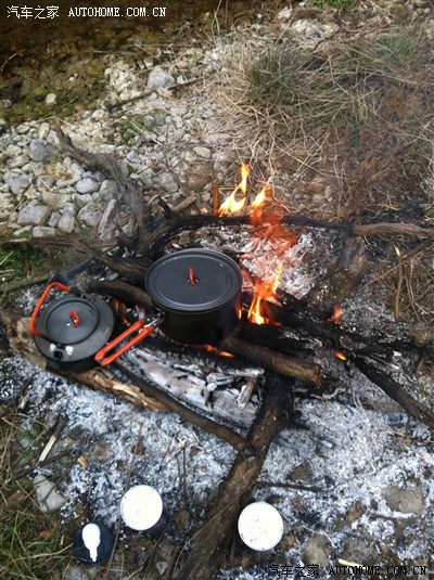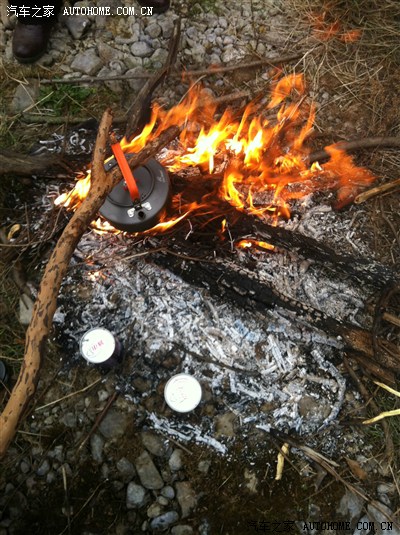 奇骏兄带的气炉 水没烧开 气没了 哈哈。。。 森林防火很重要 好在当天没风 选择一处临水附近没灌木的地方点燃了营火