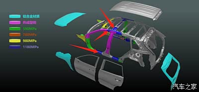 从前贯穿到后,590MPa的高强度钢做纵梁,方口形的结构,非常坚固。这里不做过多介绍。