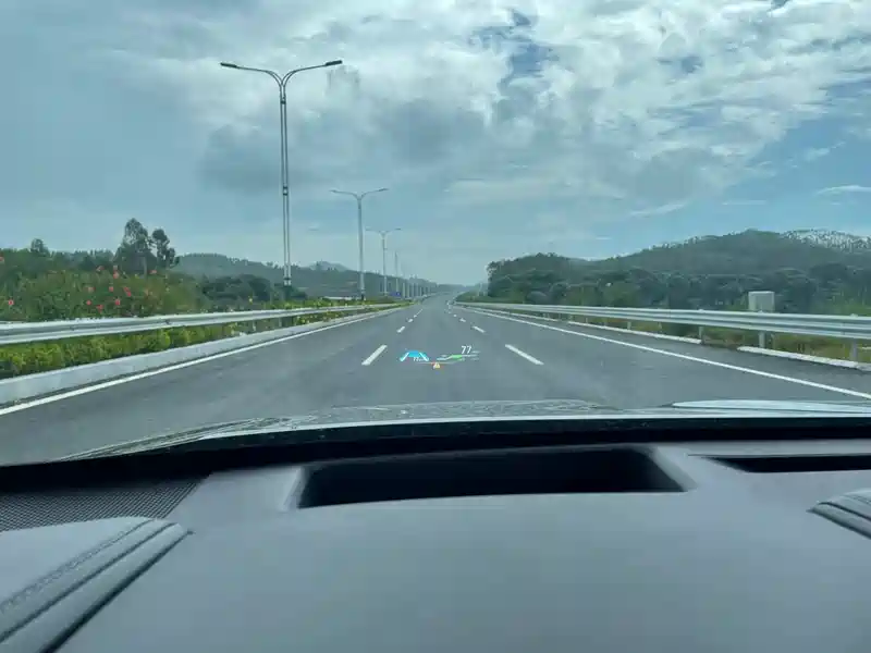 开始出发,来到了城市快速路,车辆希少,前方空无一车。打开雷达巡航系统和转向辅助功能,很好感受驾驶疲劳,我也是看说明书才会用这功能,不要过分依赖系统,双手不能离开方向盘,有突发情况随时加入。