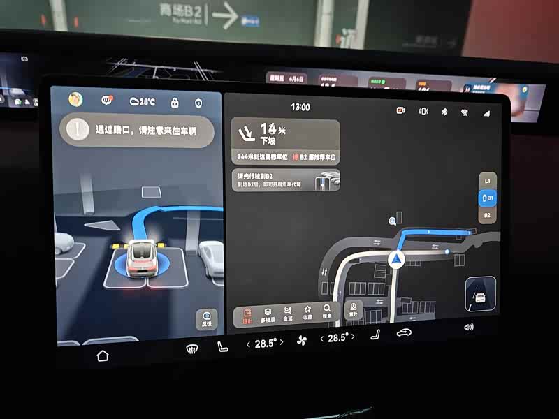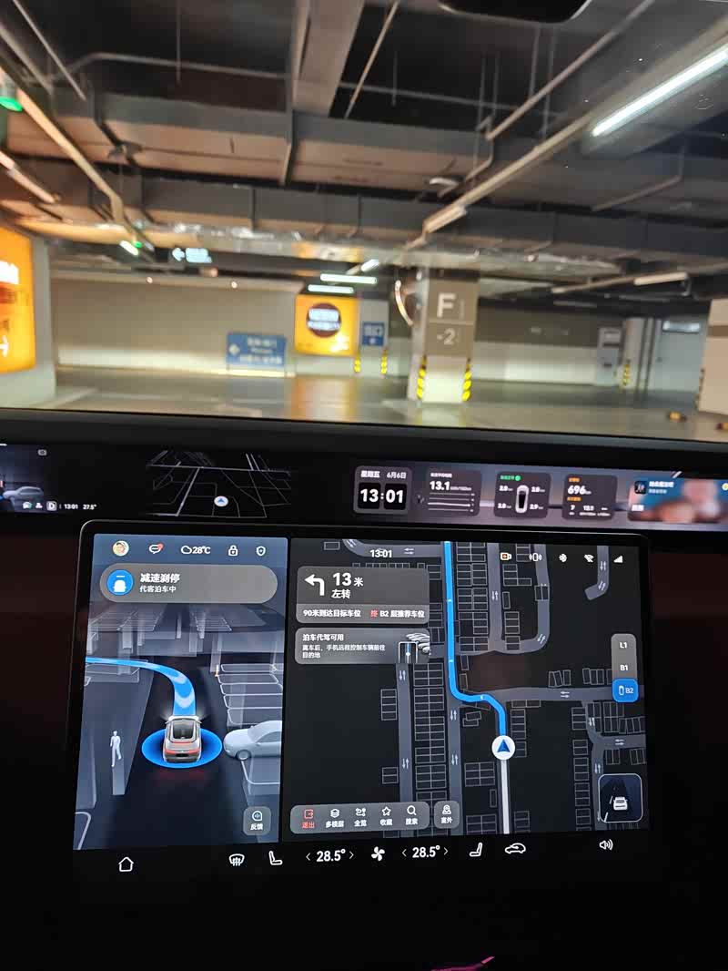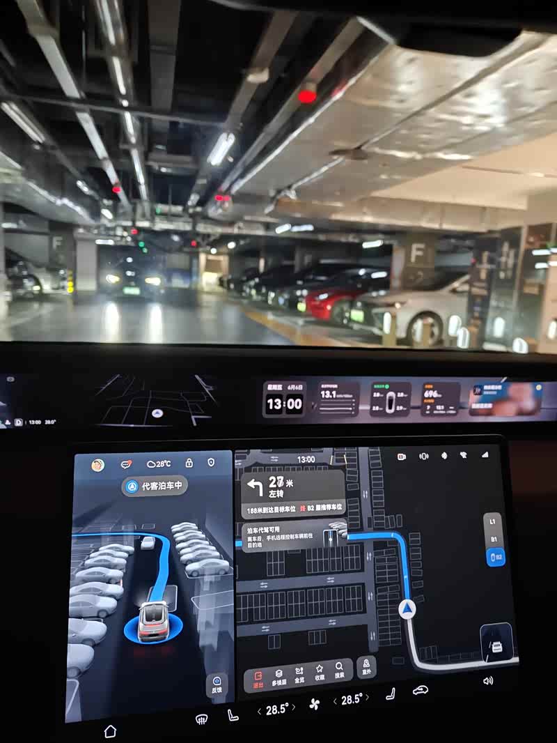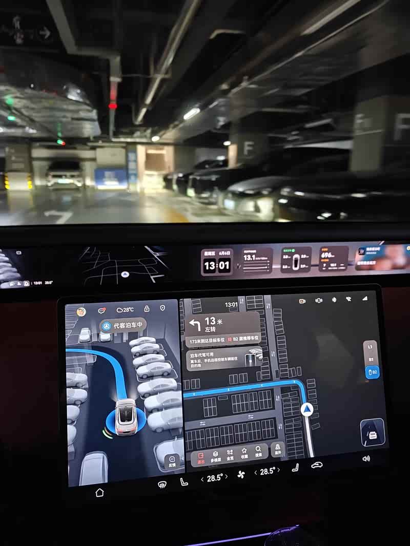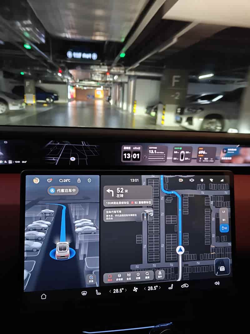 首先,其实我个人并没有深入的研究华为的这些功能,比如这个代客泊车。我这次使用这个代客泊车也是不经意间使用的。由于我经常去同一个商场,并且停车的位置大抵都差不多在同一片(商场负二层的电梯附近)。这次我车子刚开到停车场入口,小塔就提示可以选择代客泊车,我开始还想啥意思,按照它的提示直接下拨两次换挡开始,它直接带着我葱入口,穿过收费口,进入负二,然后找到既定的位置停车,整个过程非常丝滑,包括对车库里其他车辆的避让,也是非常到位。