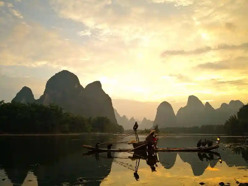 先发张必须打卡的人名币景点,落日斜阳渔歌唱晚