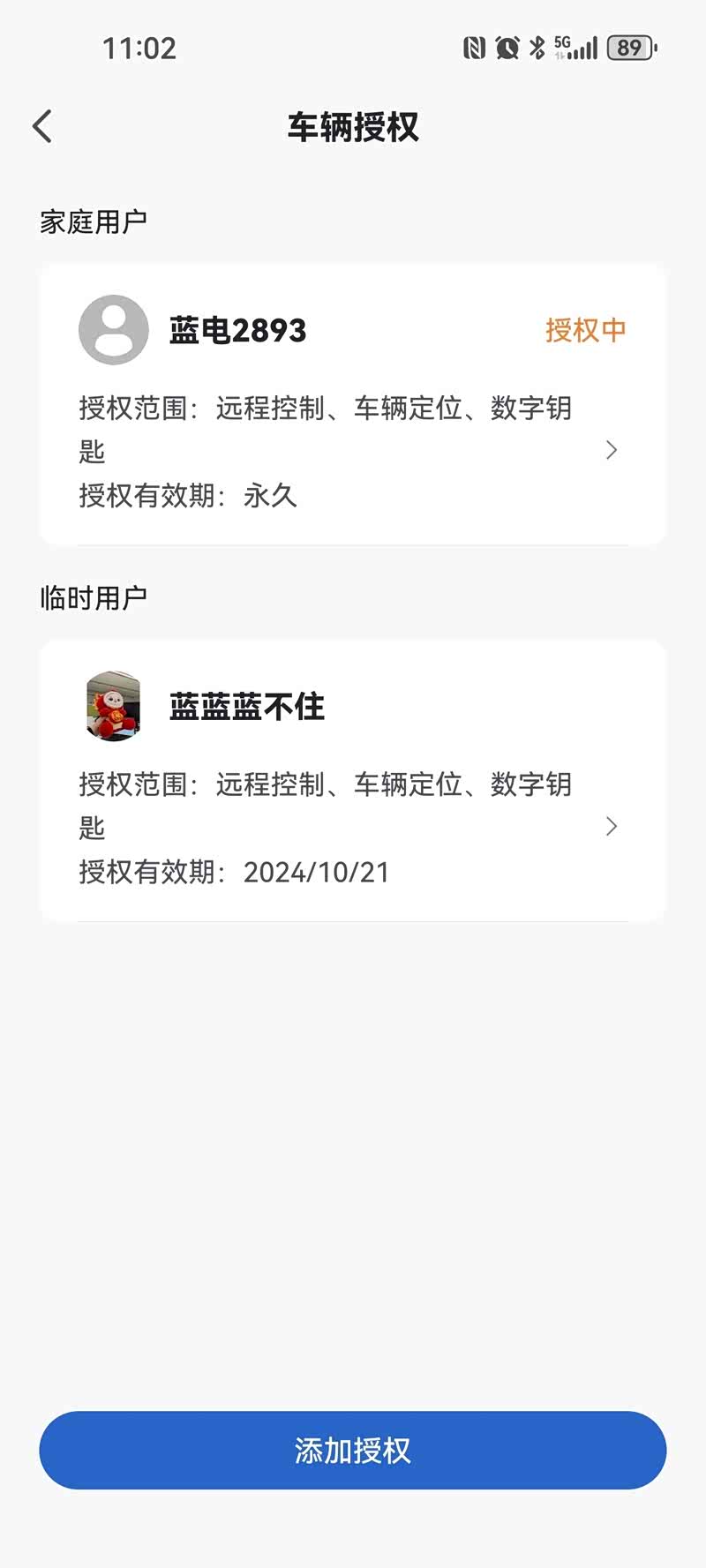 还可以在我的车辆这里添加分享的手机号,用来绑定多个钥匙。