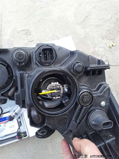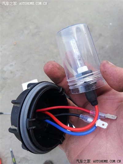 安装完是这样,注意,疝气灯泡尽量别用手去触摸,手上有汗液,会导致疝气灯泡发热不均,导致破裂,爆炸!