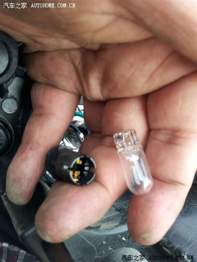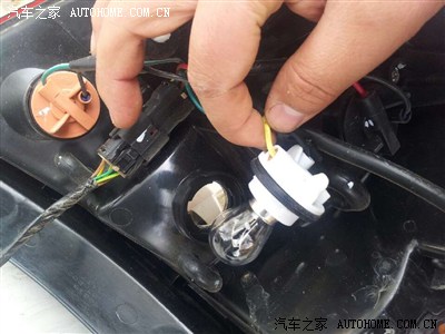 示宽灯在远光上,打开远光的防水后盖,拆下灯泡。