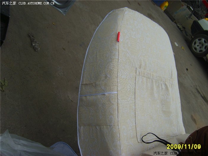 座套的驾驶座和副驾驶是有区别的,瞧见侧方这布袋了吗,是面向车里的,如果反了是装不上的,这个是副驾驶的座椅~~