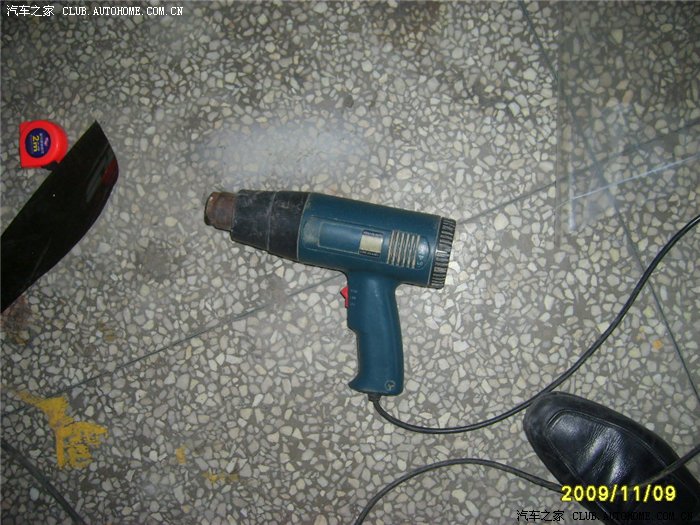 小师傅把膜按尺寸剪切好,先贴到车的外面,用一种专用工具(以下会给专图)去烤它,我问过小师傅,他说这样做是为了贴的时候不起泡~~这个过程叫定型!