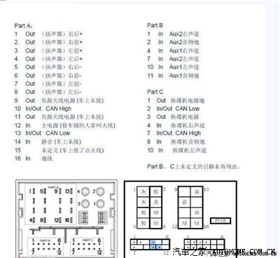 RD45的AUX接线与RD4不一样,感谢车友“penti”提供的接线方式: