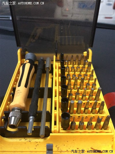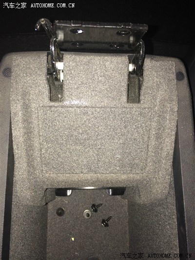 用T20螺丝刀去掉四颗螺丝后,就可以把原车扶手箱拿下来了。