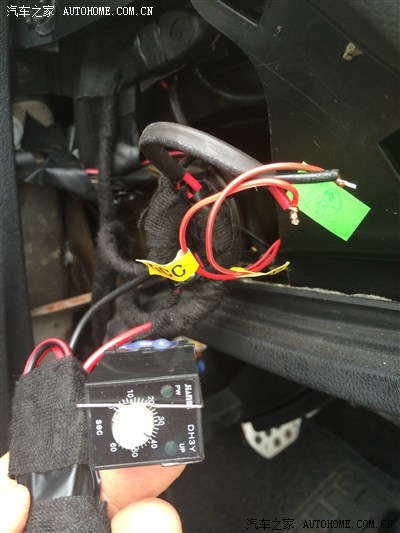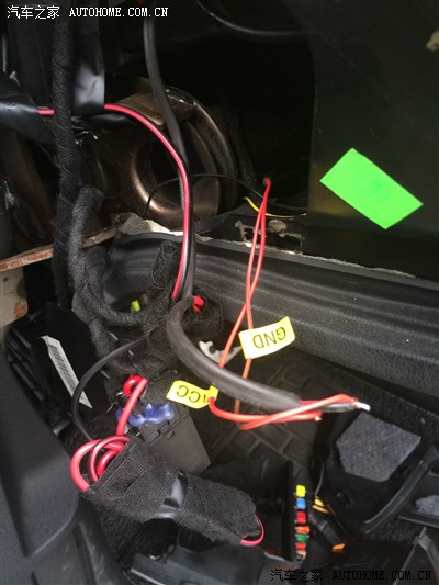 以上几张图是为了说明,用取电器从F7号保险丝取电后,接入了一个延时器,并用德国tesa绒布耐高温胶布层层包裹好,最后再用3M双面胶固定起来,以避免颠簸时可能产生的异响。