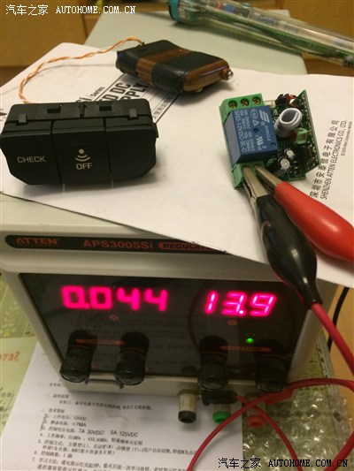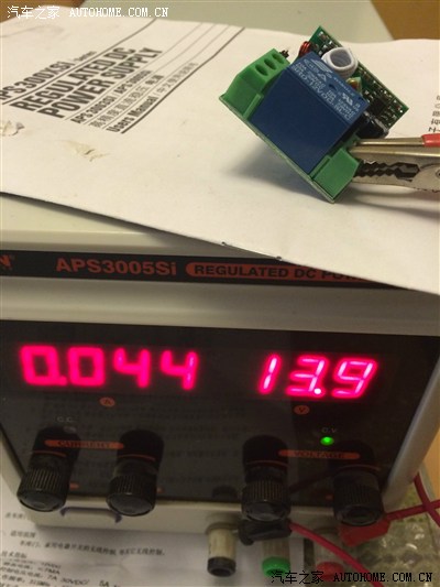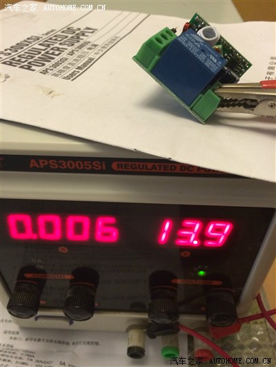 接上我的稳压电源,模拟车辆发动后的电压13.8V,待机状况的工作电流是1mA,几乎为0。