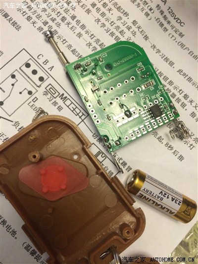 再次用3M绝缘胶带和双面胶固定好,防止异响,只不过,隔两年左右需要拿出来更换电池,型号是23A 12V的。