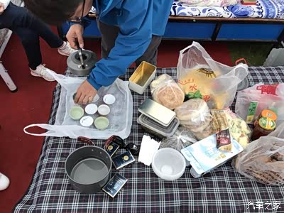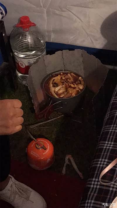 自己带的液化气小炉子。真不错。火力好。方便携带